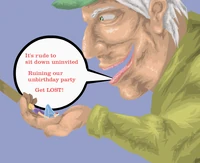 Based on Alice in Wonderland, you play the role of Alice. You start by being dropped onto a catapult, where a head falls on it, launching you up into the tree and breaking through it. Now there are huge mushrooms, which you can clear or fall and land on the grass. After this, you slide down a hole, where you will hit a flower, and slide onto a table where cups and teapots are flying around, and a voice will say, "Who is it! How rude! No room! NO room! NO room!". There is a bunny (possibly March Hare) sitting on a chair, and you must go over him, where you will then land on a huge hand. The large guy says "It's rude to sit down uninvited. Ruining our unbirthday party. Get LOST!". He will drop you, and then kick you, where you will hit a wall and slide onto a worm, you must hold on it and control it.