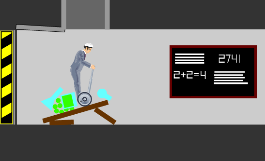 First, you will drop down from a tube that you used to finish the previous level in the series, Dawn of the Dead.lv5. You will land and crush a table full of chemistry materials. There is a chalkboard, and on the chalkboard is a number that will be helpful later in the level. Now, there is a voltage sign, warning you that you may get electrocuted. You must jump over the "bridge of electricity" or you will be "electrocuted". When you reach the elevator, you will see that someone has already taken it. He gives you the middle finger, then the elevator rises. The ground will open and you will fall. A hidden fan will blow you to the left wall, making you land on the curve, making your landing more safe.