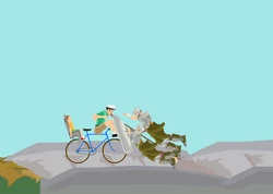After making it over the top of the stairs, you face one last warrior with a spear before proceeding through a gateway, through which you will start the boss battle with "Helicopter Demon", an enlarged version of Helicopter Man with swirling blades hanging from the sky to the left and right of him. To defeat him you must bump into him, though after each hit he will kick you back, but he will end up accidentally kicking himself in the process. After several hits, he and the helicopter blades will break apart and you can then proceed through another gateway leading to the finish, where a bonfire is lit. A sword is stuck in it, then the victory is triggered.