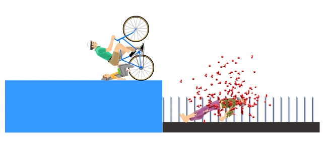 The harpoon gun is a hazard with a grey, metallic, possibly concrete base with a harpoon-firing device mounted onto it. It targets characters, and fires when you get close enough. A harpoon to the head instantly kills you, even if it doesn't decapitate your character. You can toggle "anchor" on and off. Anchoring determines whether the harpoon remains attached to the base with a rope when fired, or whether it simply flies free of the base. Each harpoon gun can only fire a single harpoon. The harpoon gun has been available as of version 1.30 of Happy Wheels.