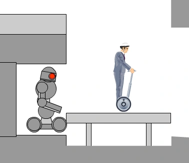 After that, a platform will drop when you touch it, followed by a robot that will chase you. If you touch it, it might fling its arm and you'll get launched and possibly killed. There are some landmines that will launch you up to a spike set on the ceiling. Now, there's an elevator that will start dropping once something touches it. Lastly, the elevator-like machine appears again, but this time, it will bring you up to the next area. Head right and the finish line is there, with a wall that blocks you from proceeding (this level has a sequel called Laboratory 2, which starts right where you finish in Laboratory 1).