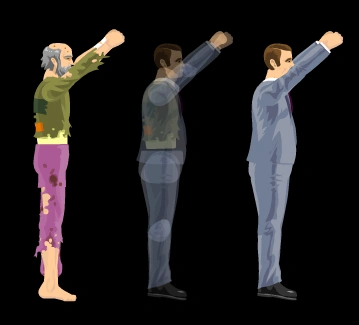Obese NPCs like Effective Shopper and Santa Claus have a different physical torso shape compared to their playable counterpart.