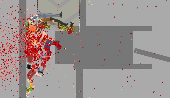 Chompers (also known as snappers, scissors, and clappers) consist of two interactive items (often blade weapons) connected to a pin joint on the back ends. Unless the two interactive items are not blade weapons, as soon as one latches to the player, it is usually a matter of seconds until they end up easily ripping apart a character, otherwise its only threat is crushing a character. Several user-made levels use them, including the most recognizable use in the featured level, --=|Obst. Course|=--, and various other levels, usually consisting of "Justin Bieber" (Irresponsible Son or an Elf) getting thrown into a pit of chompers. Chompers can also be used with the high speed spin glitch so in most cases as soon it is touched it will kill the player.