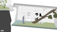 Meeting on the lower floor besides a collapsed elevator, Redbot signals for the both of you to meet 'at the other side of the tube', leaving you to navigate the collapsed elevator, a fallen tree bridge, and a hollowed out tree to the bottom floor. It is at this point you are halted by a monowheeled robot, demanding that you partake in his drug trial. Pillbot then promptly leads the player into a room where they'll promptly be stuck until the Subject takes the pill from the pedestal.
