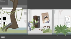 Now that the player has come to, he ought to 'defrost' The Doctors from a control panel and get them out of their cryogenic state. Upon defrosting, Redbot will assume a leg-up position and subsequently hoist the player into the derelict testing facility proper via the vents. Rooms 1 and 2 will present puzzles in the manner of odd one out, exhausting wrong answers to which is of no consequences given you eventually click the correct one which will open the exit (if it isn't completely derelict already). This is a hint of rather minor obstacles which shows up periodically in the level. As you complete the brainteaser in Room 2 and move into Room 3 perched precariously on a ledge, it predictably plummets to sua lower floor, overgrown with vegetation and other derelict puzzle rooms which the player navigates and towards an elevator, which will let the Subject access to an upper floor of the facility.