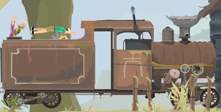 The train will go up a cliff and then land and ride on an incomplete bridge. (If you fall, you will land on nothing but land with cacti.) It will then ride off the bridge and ride on land. (If you fall here, you will see spider webs and spiders. At the bottom, there is a treasure chest. If you go touch it, you will collect a token hidden behind it and automatically win the level.) The train will reach a house, break the glass, and knock away two eagles. The train will then ride off the cliff ahead and land again. (If you fall, you will end up in a pit of wolves that will bite you.) There are telephone poles that contain harpoon guns, followed by Explorer Guy attempting to stab you with his spear. The train will ride off a cliff again, but there isn't any road ahead, so you and the train will fall for a few seconds and land on finish lines hidden by "DEAD END" signs.