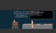 - In the beginning of the level, there is a giant hole in the ceiling. At first, this may seem like a possible path, but if one attempts to use take that "path", the character will be pushed back to the ground and crushed by some falling text, reading "NO ENTRY!".